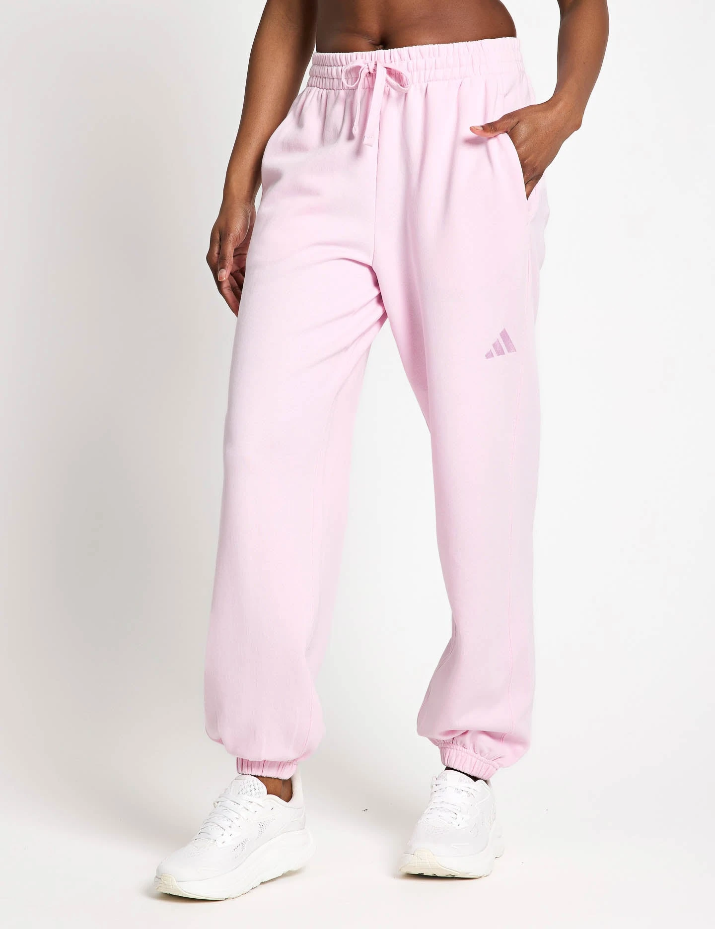 Kick back in style with the All SZN French Terry Loose Joggers, a mid-rise, full-length pant made with soft cotton French Terry as part of the initiative, perfect for adding style on days off. The slanted side seams and true gusset design, along with an embroidered three-bar logo, add an eye-catching detail, so you look stylish while lounging or running errands.
