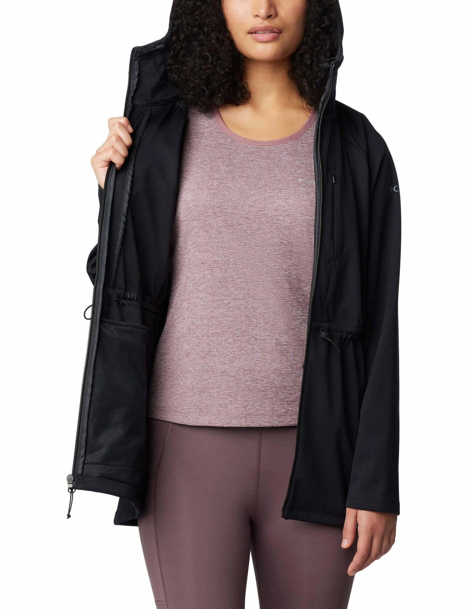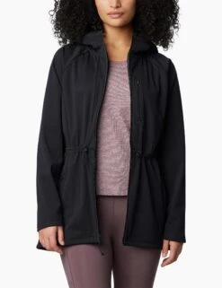 The Flora Park II Softshell Jacket is your ultimate outdoor layering piece, offering a tailored fit with adjustable hood and waist for maximum comfort. Zippered pockets keep your essentials safe, while the softshell fabric ensures you stay protected from the elements. Perfect for those crisp, cool days when you want to take in the views.