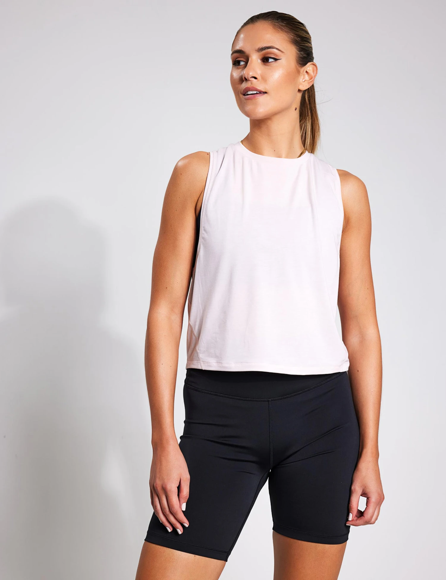 Clean lines. Clean concept. The YMO Crop It Tank in Soft Pink is respons made and has a simple cropped, box shape. Made from super soft, breathable and lightweight sustainable fabric.