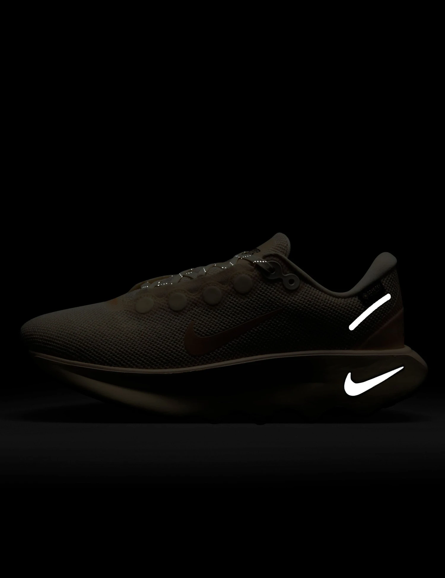 The winterized Nike Motiva is made for wet-weather walks, featuring a fully waterproof GORE-TEX upper and reflective details for visibility. Enjoy a super smooth ride with an exaggerated rocker and Comfortgroove Technology, providing an ultra-soft, piston-like effect with every stride.