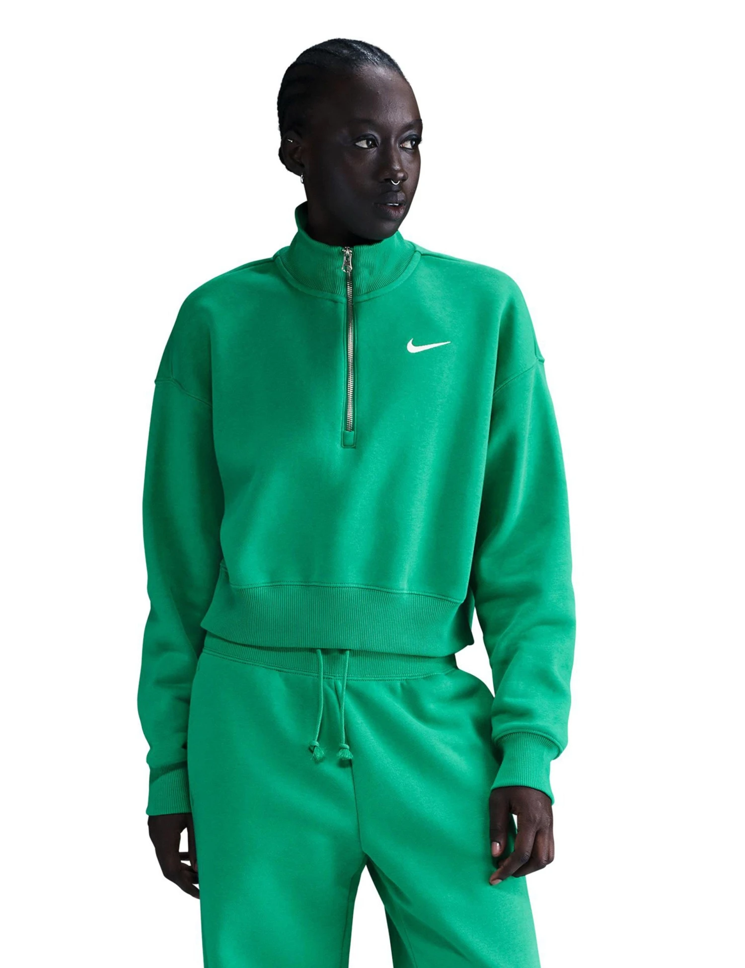 Look cute while you get cosy in the Sportswear Phoenix Fleece 1/2-Zip Cropped Sweatshirt, perfect for any occasion, whether you’re layering or lounging. The midweight fleece feels just right, while the taller ribbing adds a trendy twist.