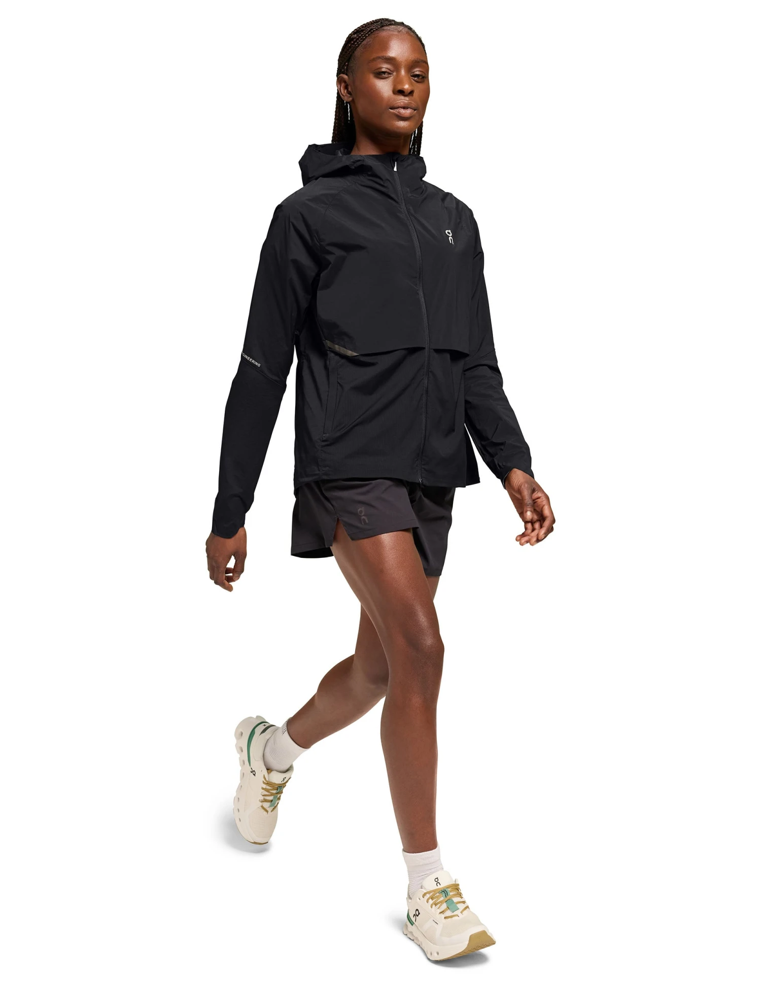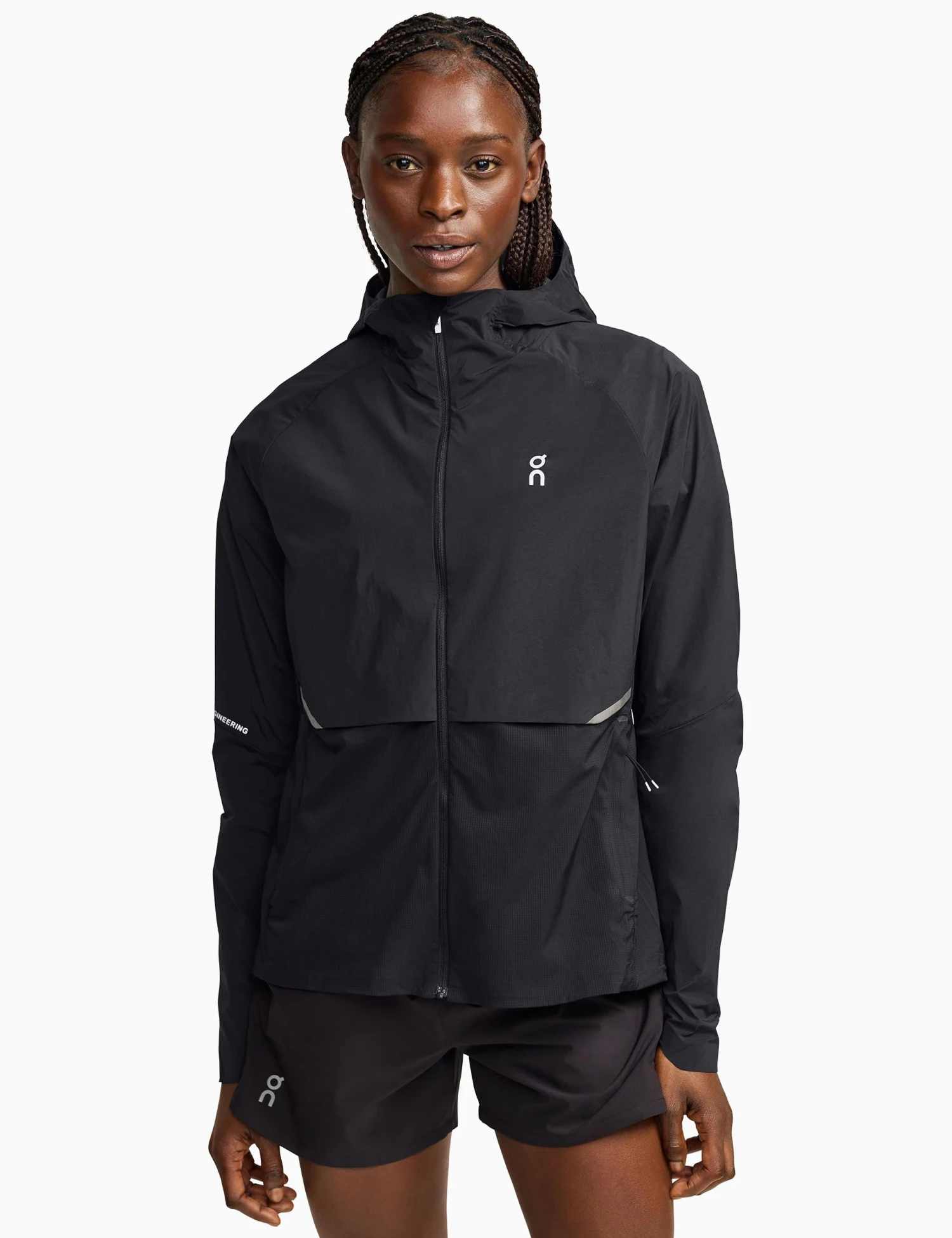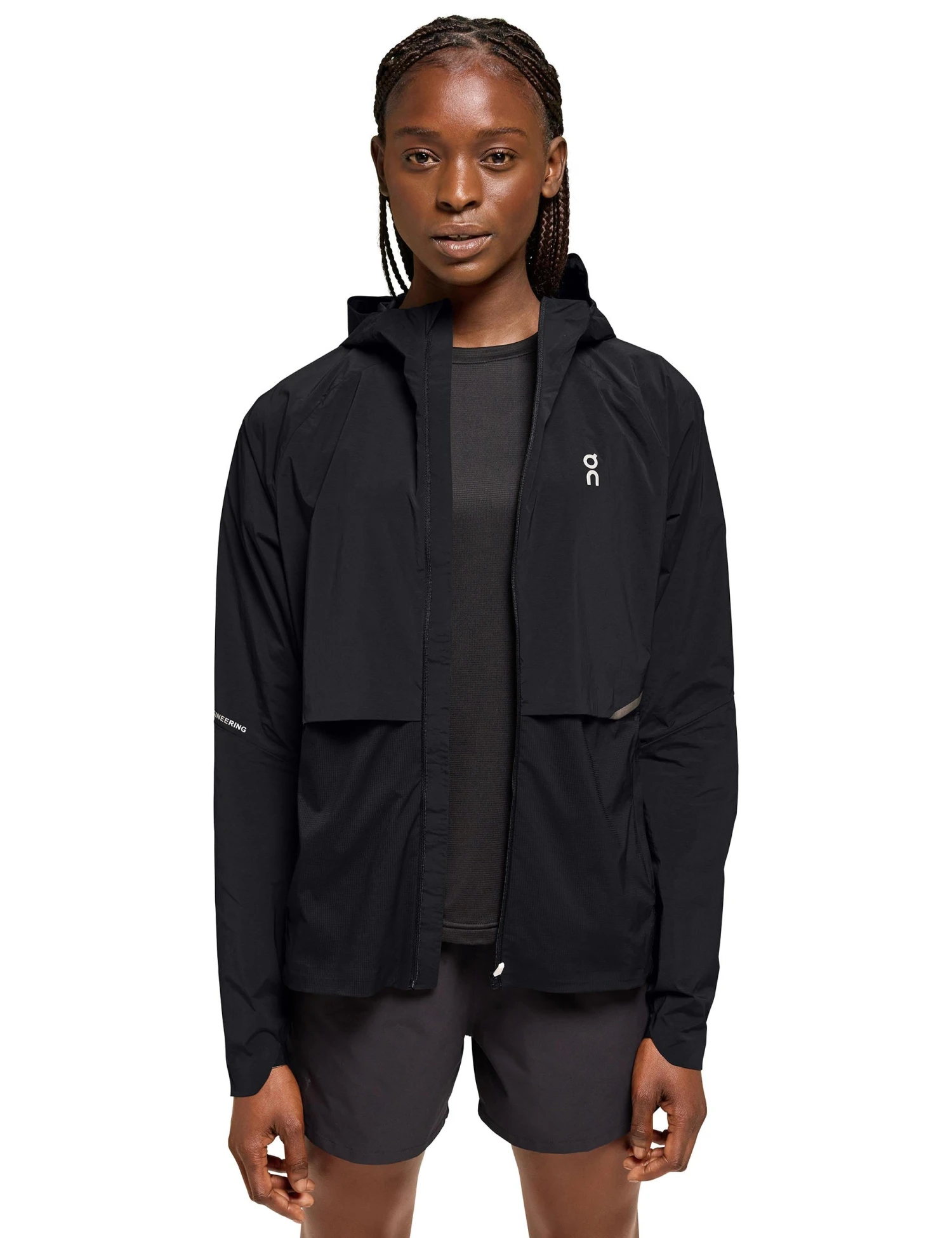 Run the mile in style with the Core Jacket, where fashion and function fuse together effortlessly. Featuring a sleek funnel neck and a full hood, for added coverage during showers. With moisture wicking technology and a breathable design, conquer your runs with comfort and unparalleled style.