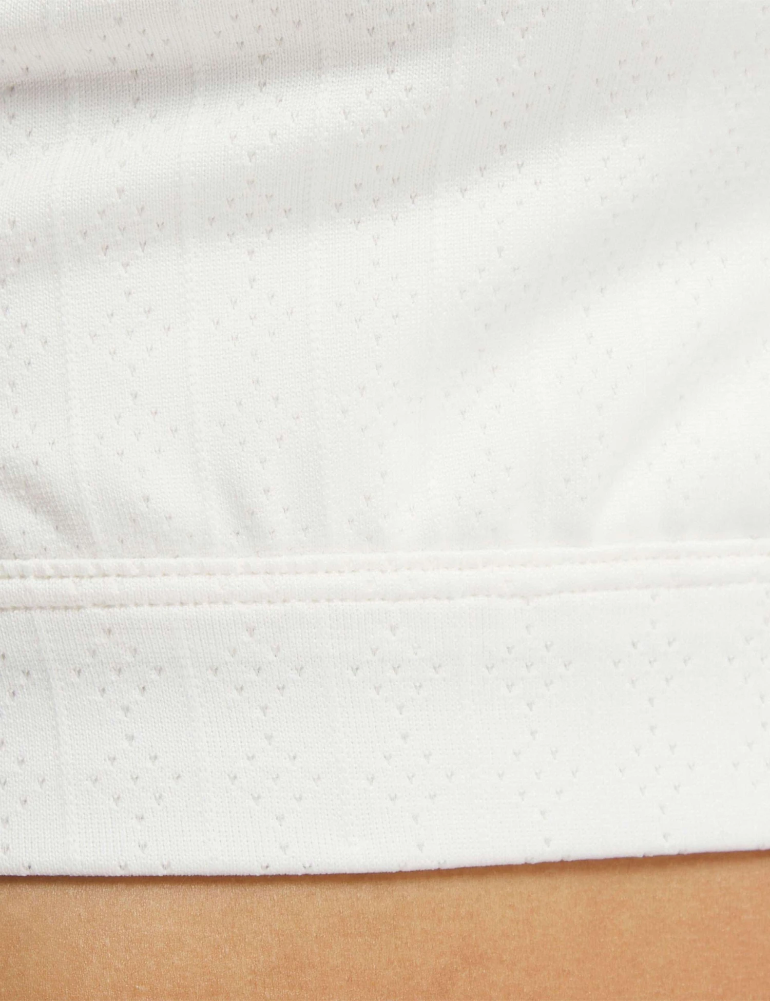 Show off your courtside style with the Classics Retro Court Light Workout Bra, featuring a seamless pull on design perfect for everyday wear or a friendly tennis match. This updated tennis top, crafted from stretch pointelle with sporty accents, offers a sleek silhouette enhanced by contrast binding.