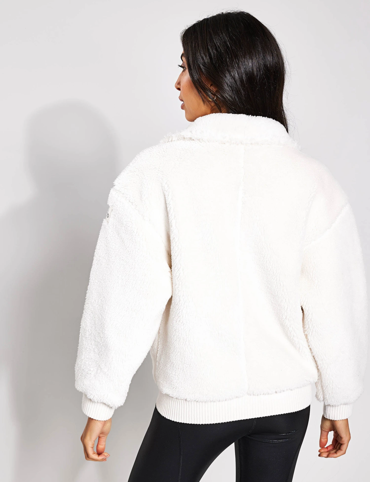 Feed your sherpa obsession with Alo Yoga’s stylish Sherpa Varsity Jacket in Ivory. Designed with an oversized collar and French terry lining that’s touchably soft.