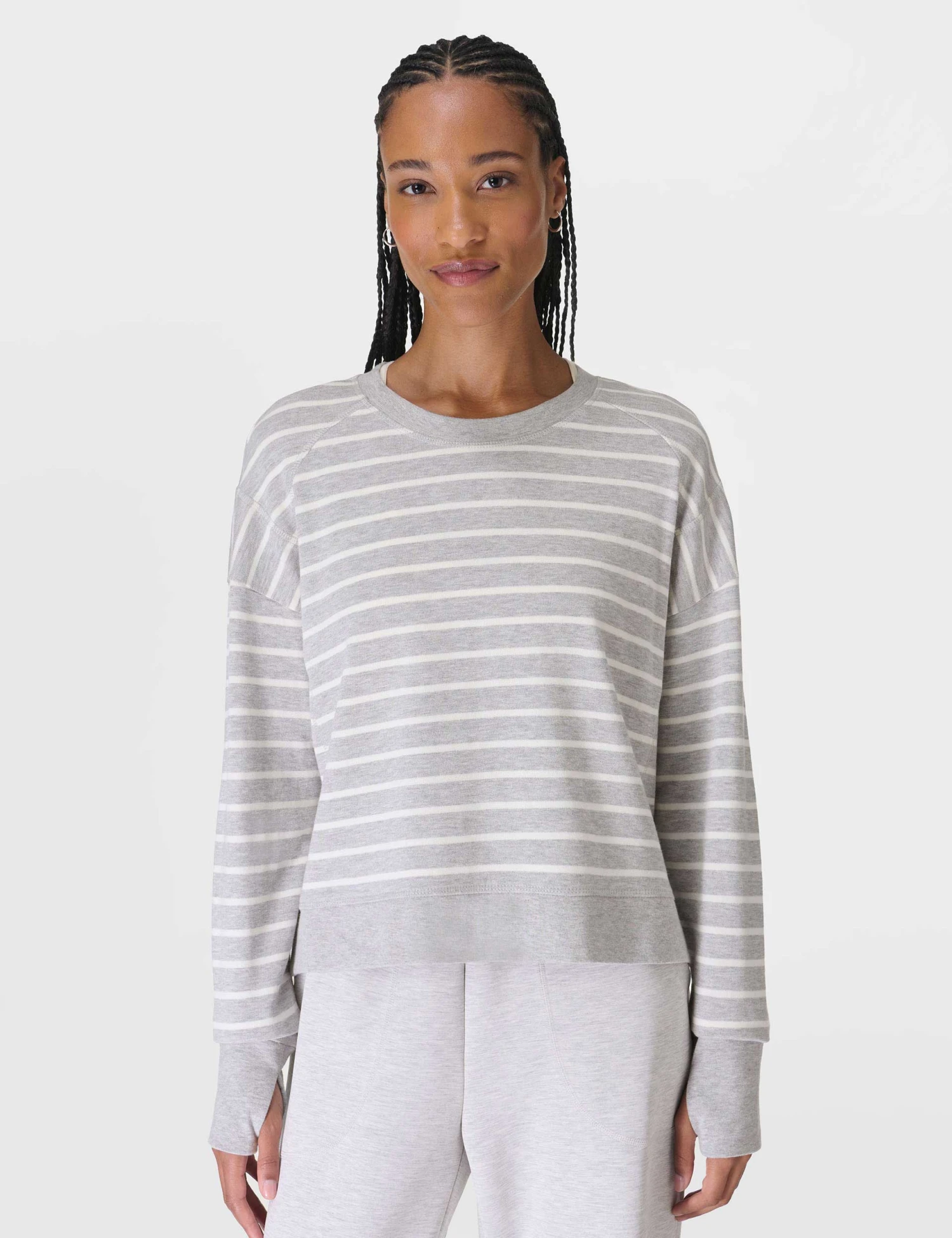 Get some well-earned rest in the After Class Crop Sweatshirt, designed with a soft cotton blend, a boxy fit, and cosy thumbholes to take your cool-down routine to the next level. The chic cropped style with side slits and a high-low hem adds a trendy touch, perfect for grabbing a post-class coffee or chilling at home.