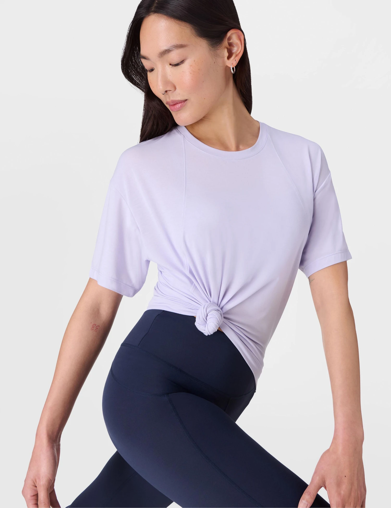 Fly through yoga practice with the Soft Flow Studio T-Shirt, where part- fabric offers a super-soft touch that feels great against your skin with every pose. Its easy, relaxed fit with a classic crew neck ensures all-day comfort so you can wear it to the studio and beyond.