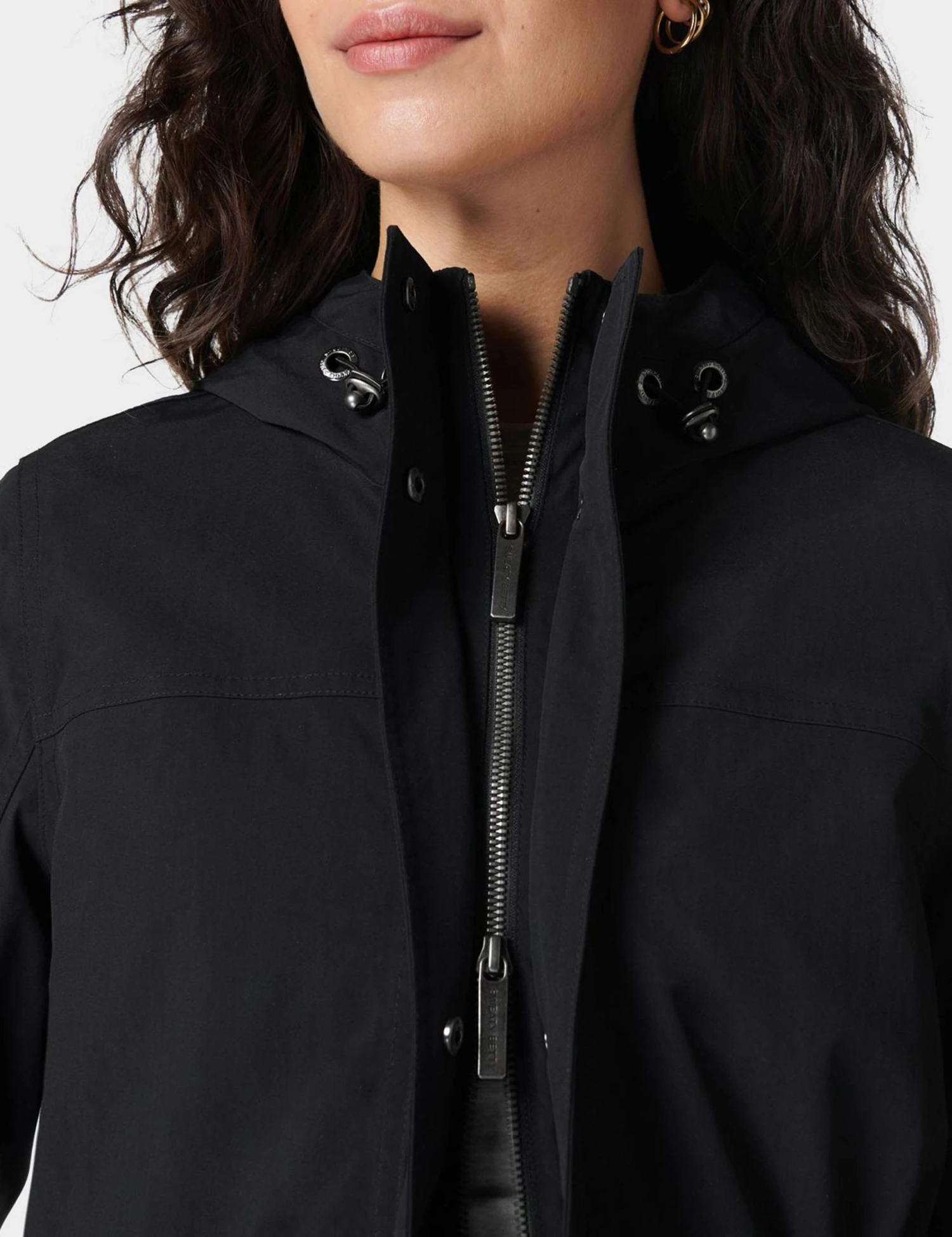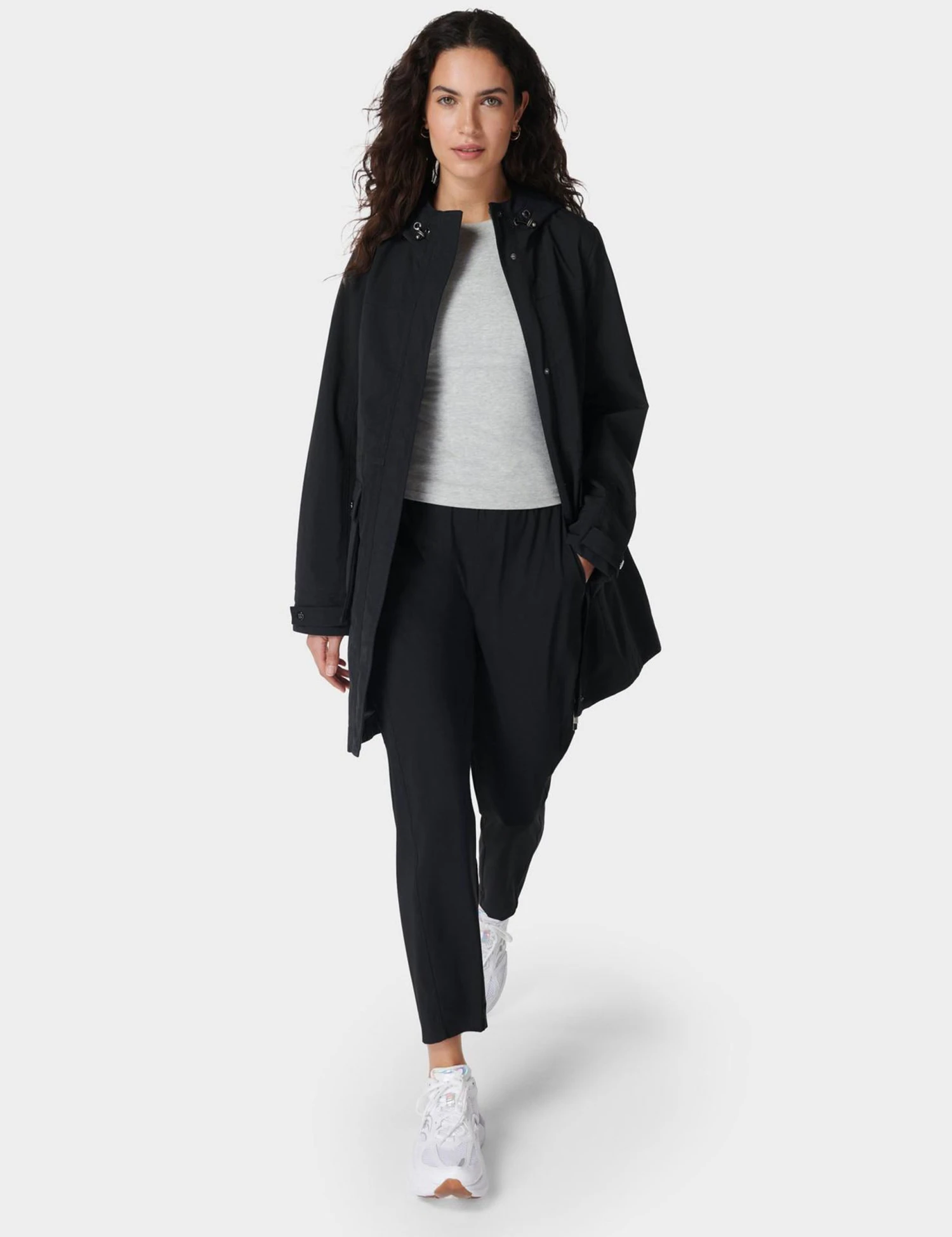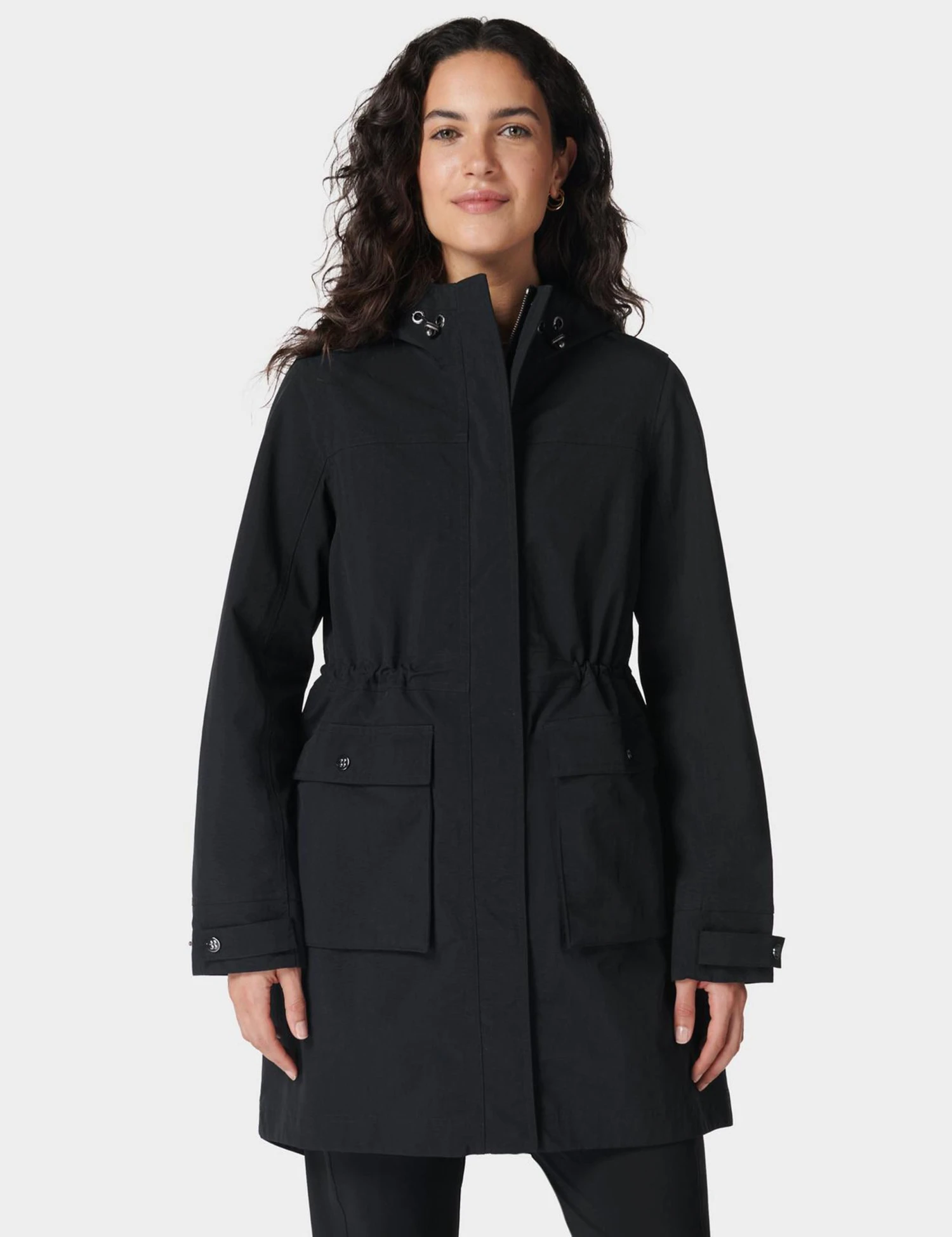 - Longline, breathable fabric with taped seams