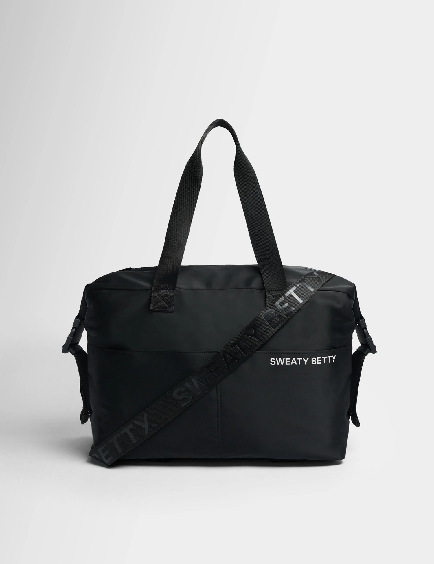 Elevate your fitness journey with the Sweaty Betty Strive Gym Bag. Designed for the active woman on the move, this sleek black tote combines high-performance functionality with a premium aesthetic. Crafted from lightweight, water-resistant nylon canvas, it ensures your gear stays protected whether you are heading to the studio or escaping for a weekend adventure.