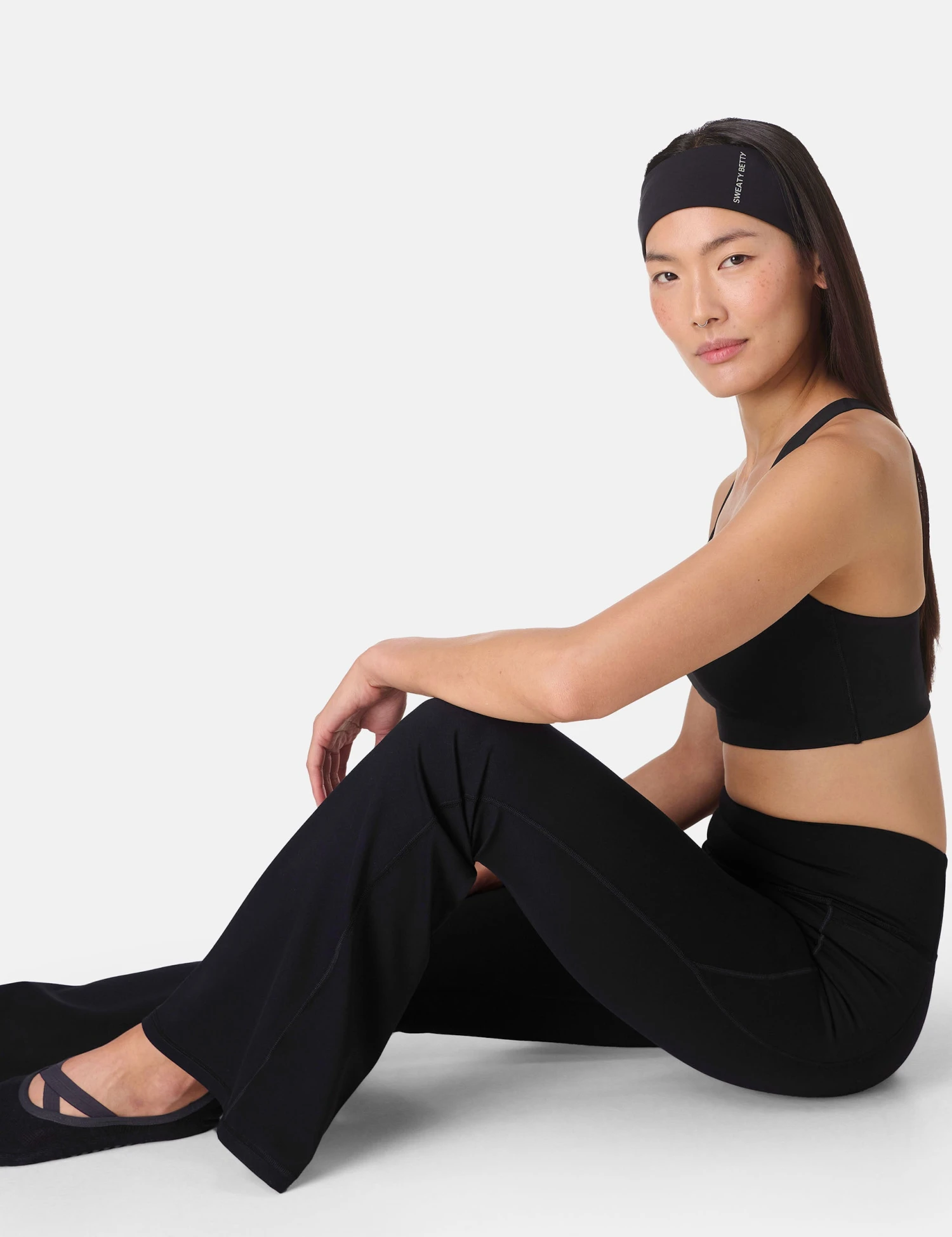 Glide through yoga sessions with the Ultimate Studio Flare Trousers, featuring a flared silhouette and gentle compression for low-impact support. Quick-drying, moisture-wicking fabric ensures lasting comfort, while a subtly curved waist and side slip pocket add practical details. The smooth waistband provides a secure, flattering fit.