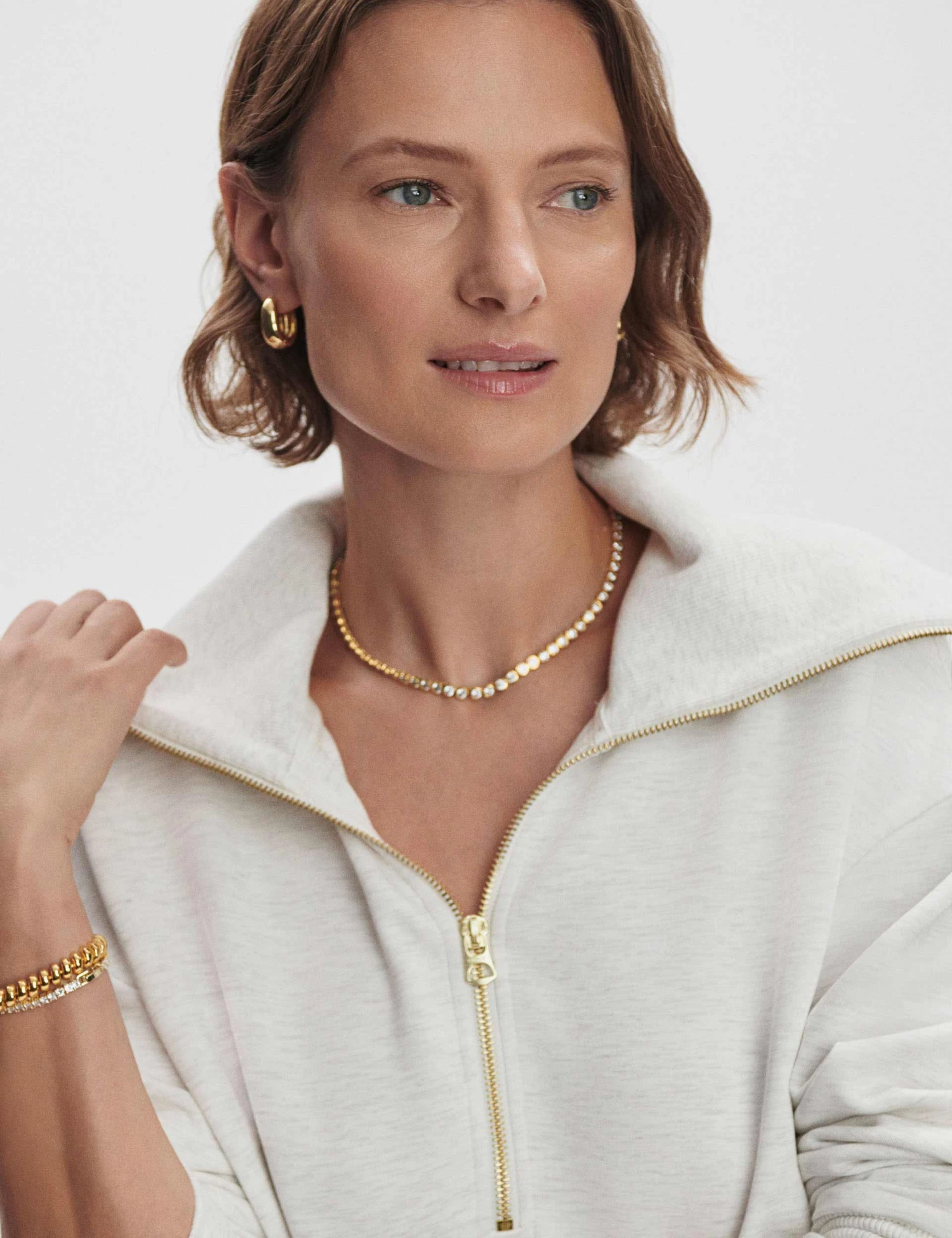 Cosy up in the Larson Half Zip Sweat for your off-duty downtime, where an exaggerated collar and longer back hem create a dramatic, bang-on-trend look. Its DoubleSoft fabric with side vents keeps you warm yet breathable, while dropped shoulders add a relaxed vibe perfect for lounging or casual outings.