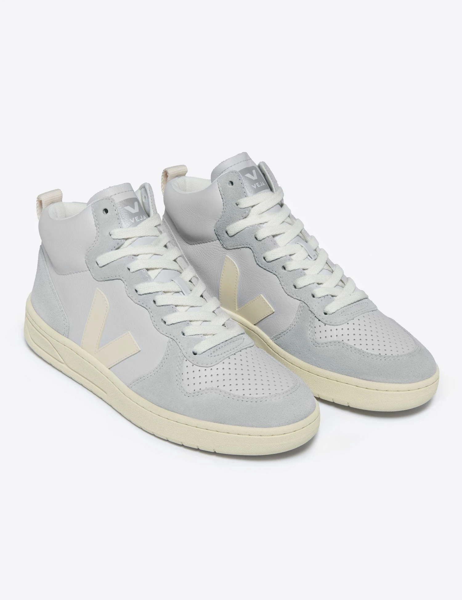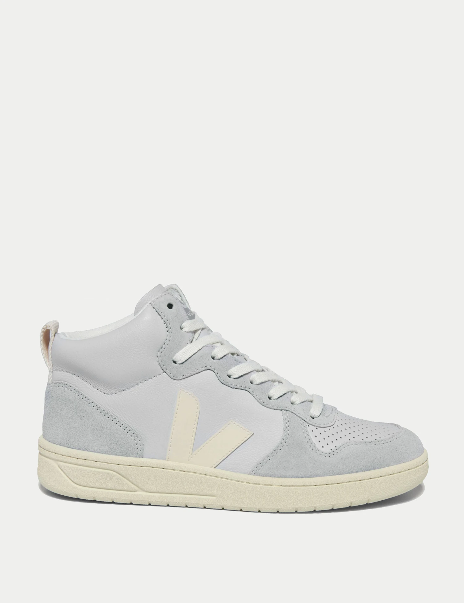 Crafted from ecological and sustainable materials, Veja’s V-15 Pearl Cashew trainers are a game-changer. Enjoy a comfy, chunky sole, timeless high top style and a modern pop of colour with this fashion-approved style.