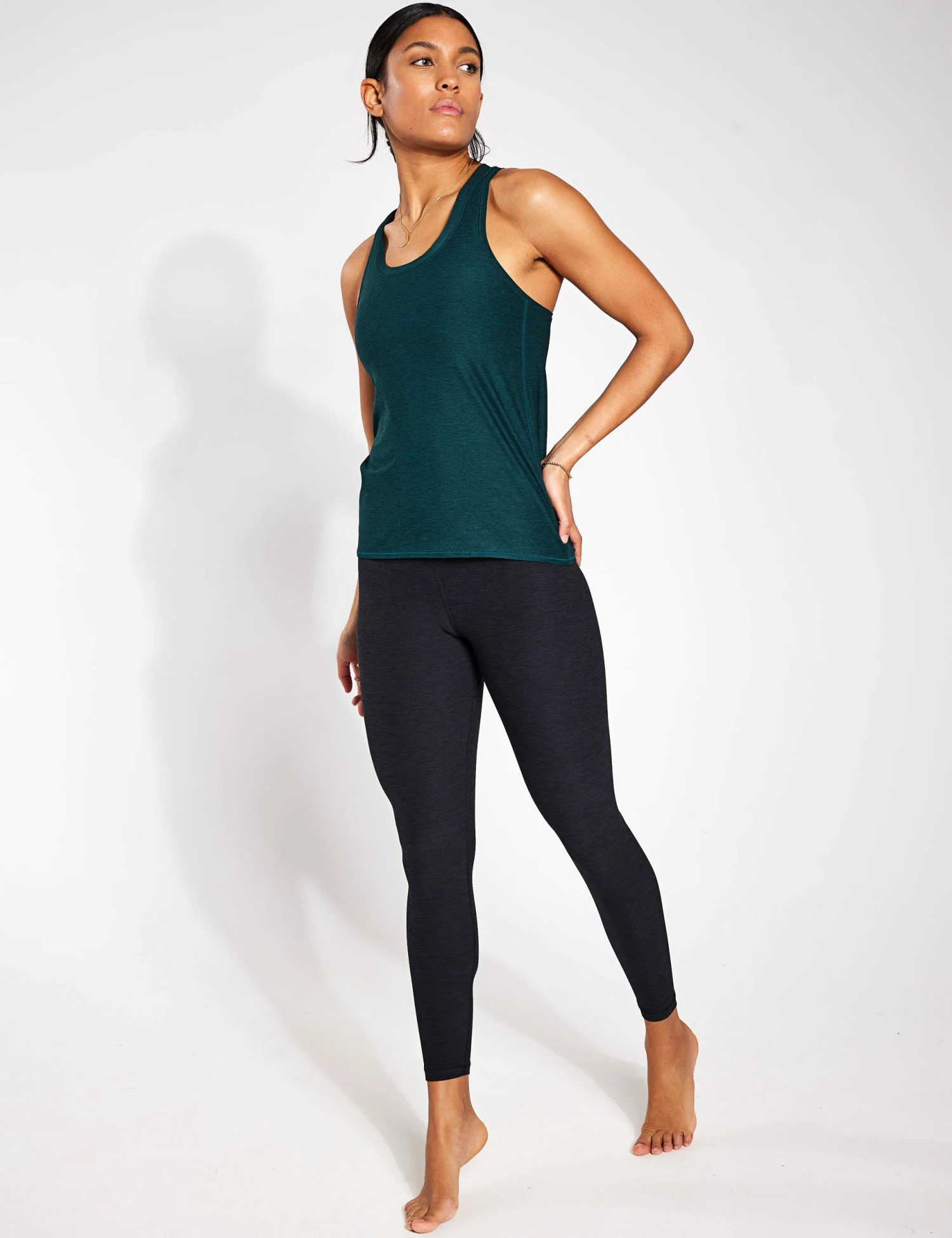 Enjoy cool comfort in the Vitality Tank from YMO. Its scoop neck and racerback design offer coverage and support in a stylish package.